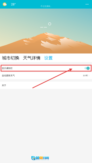 进入设置页面,打开通知栏显示功能,对天气应用的显示选项进行个性化设置,提升使用感受。