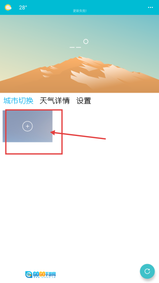 打开天气应用后,找到城市切换区域的+按钮并点击,即可进入城市添加页面,以便添加新的城市来查看其天气情况。