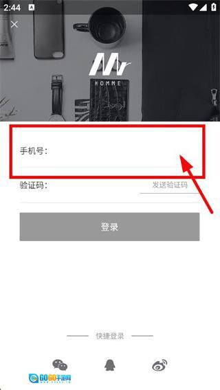 接下来我们可以在登录页面输入手机号,继续下一步操作。