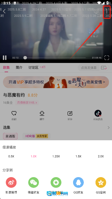 4、点击播放页面右上角的三点还可以对倍数进行调节