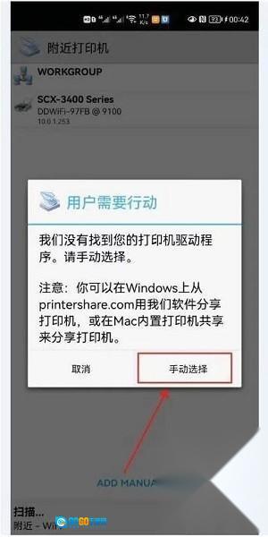 要是你没找到打印机驱动程序,那就点击“手动选择”;