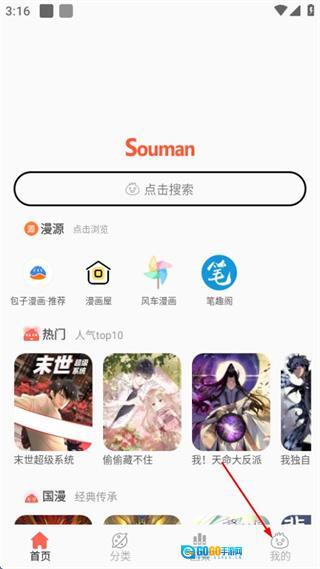 在漫画屋的首页,找到右下角的“我的”选项并点击,即可进入个人页面。