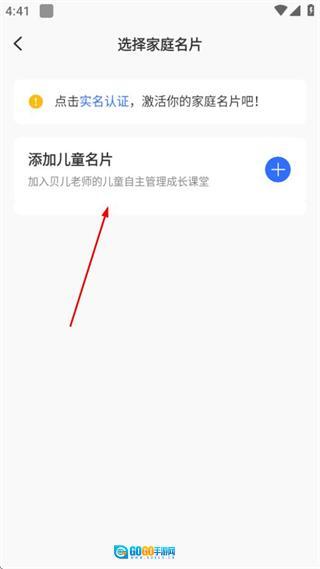 在家庭名片选择页面,点击添加儿童名片的选项,即可进入新建儿童名片的页面。