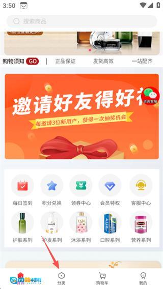 在精致生活馆首页,点击分类选项,进入分类页面。