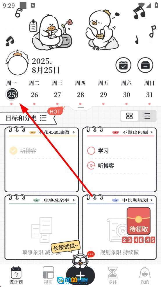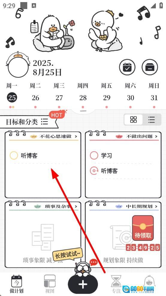 进入计划制定页面后,找到任务对应的分类卡片并点击,接着轻点任务旁边的圆形选择框,以此来标记该任务的完成状态。