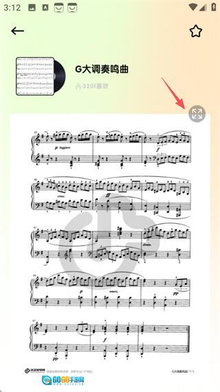 在琴谱详情页面,点击全屏图标,就能全屏查看该琴谱的内容。