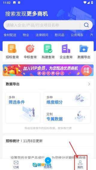 打开招标分类,点击页面底部的“我的”选项,即可进入个人中心页面。