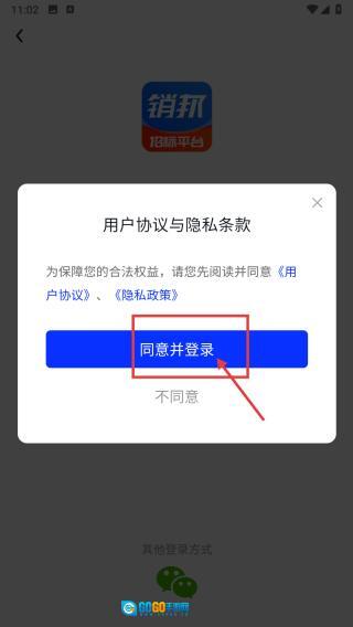 在登录页面,选择微信登录的选项后,会弹出需要确认用户协议和隐私条款的窗口。