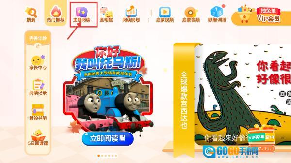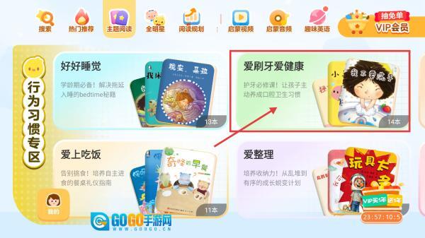 进入儿童阅读板块,选择主题阅读分类标签,即可跳转至主题阅读页面。