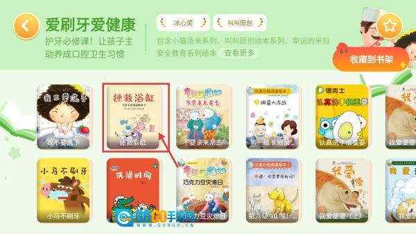 在主题阅读页面,点击“爱刷牙爱健康”板块,即可进入该主题的绘本列表页面。
