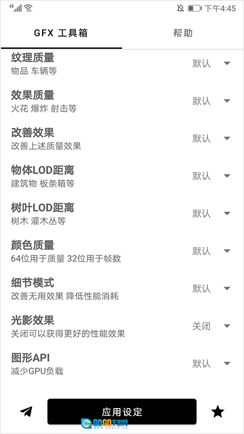 1、GFX工具箱修改画质后下次进入游戏画质会还原