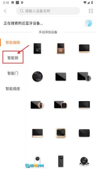 在设备添加界面,找到并点击智能锁分类标签,即可筛选出智能锁设备列表。