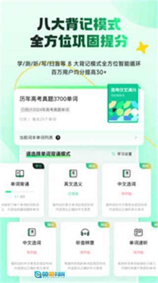 八种背记模式,涵盖读音跟读、拼写练习、释义匹配等多个维度,通过趣味化学习设计打破传统背单词的枯燥感,让用户在多样化练习中加深单词记忆。