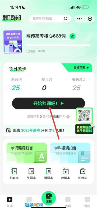 在秒词邦的首页,找到并点击“开始秒词吧”按钮,即可进入秒词模式的页面。