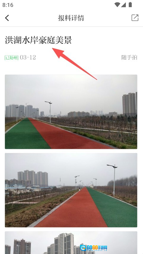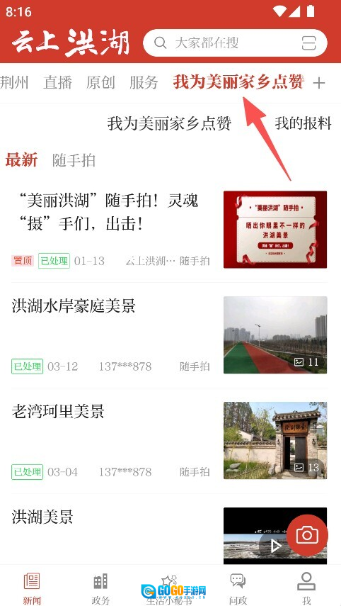 进入 “我为美丽家乡点赞”,查看报料详情。