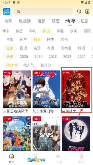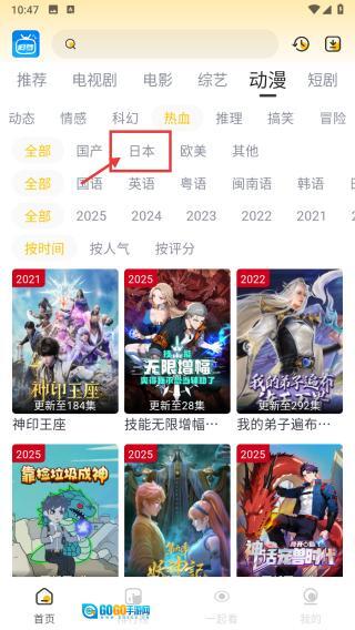 在动漫专区,选择日本标签,筛选出日本动漫内容。