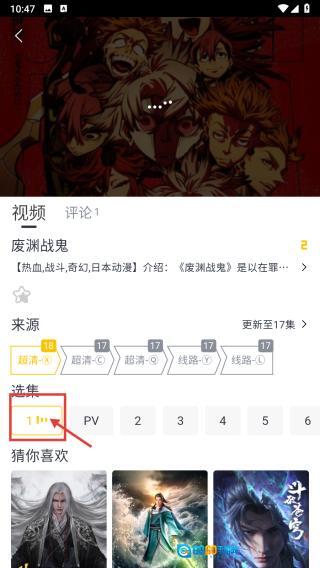 在详情页,点击1集选项,开始播放该动漫第一集。