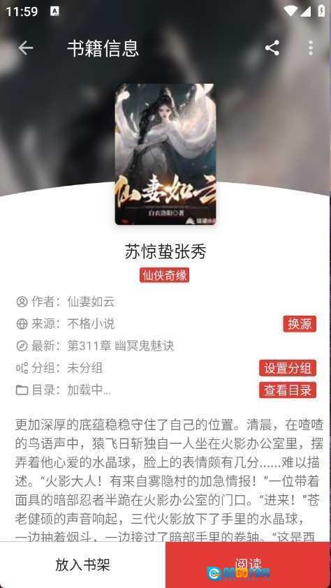用户点开想看的小说资源点击“阅读”。