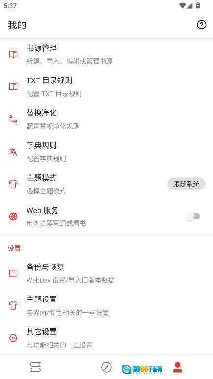 设置界面简约却不简单,我们依据书友的使用频率来设计,没有添加过多繁琐的设置项,让您一眼就能看明白。