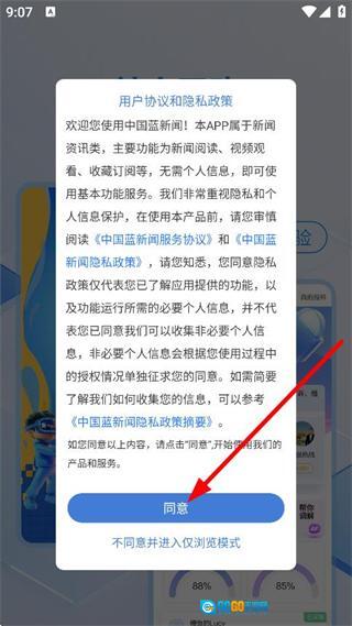 在用户协议与隐私政策的弹窗里,点击同意按钮,即可进入首页。