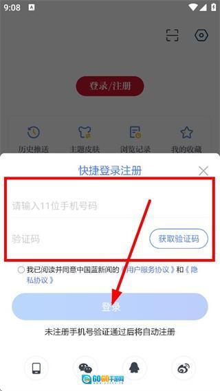 输入手机号码与验证码,勾选相关协议后点击登录按钮,即可完成整个登录流程。