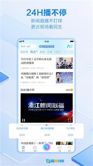 中国蓝新闻是浙江新蓝网络传媒精心打造的新闻服务平台,它以新闻主题适配与音频特色为核心优势,紧密追踪时事热点,内容覆盖国内外重大新闻、影视、娱乐、体育、文化等多个领域。该平台突破了单一的文字阅读模式,让用户能够通过文字、视频、直播等多种形式,直观地领略新闻的独特魅力,从而享受到丰富多样的信息服务体验。