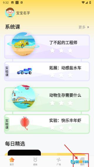 打开儿童教育类应用,点击底部的“我的”选项,进入个人中心页面。