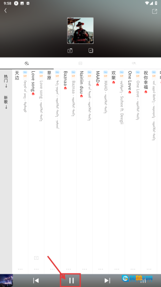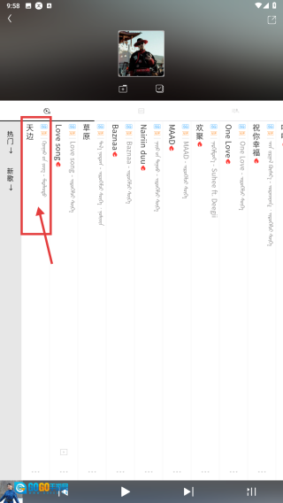 在音乐列表中,找到天边歌曲,点击进入播放页。