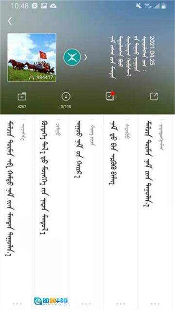 丰富蒙文音乐资源:平台收录了上万首传统蒙文歌曲,每首歌曲都配有对应的蒙古歌词,涵盖了多样的音乐风格与丰富的主题,能够满足不同用户对于蒙文音乐的聆听需求,充分展现出传统蒙文音乐独特的魅力。