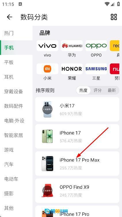 在页面上挑选你想查看的手机型号,然后进入该手机的详情页面。