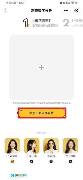 首先上传一张清晰的正脸照片