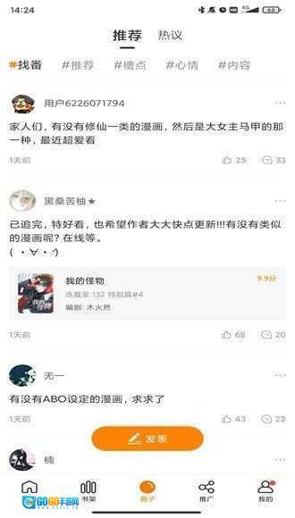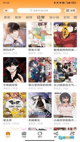 可以把常看的漫画添加到个人书架进行统一管理,当漫画连载更新时,系统会自动推送通知,让你能第一时间了解最新章节的动态。
