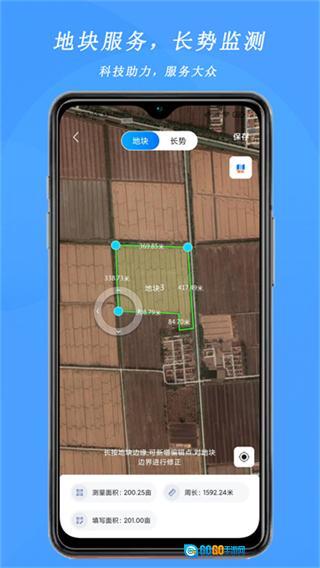 支持用户依据实际农事场景自行设定地块边界,系统能够智能测算出地块的面积与周长数据,并且实时获取并反馈海拔信息,为后续的种植规划和成本核算提供精确的数据支持。