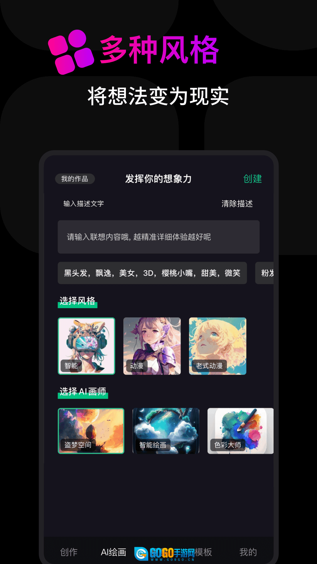 1:海量模板分类清晰,轻松切换不同风格,满足多样化创作需求。