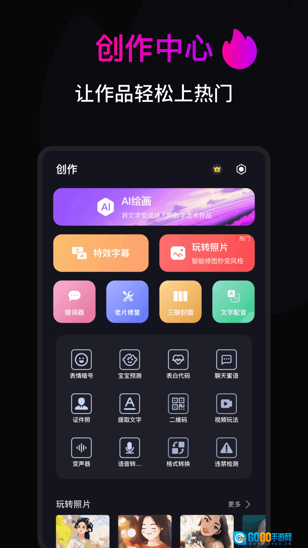在创作界面里,直接挑选需要的功能模块,马上开启你的创意之旅。