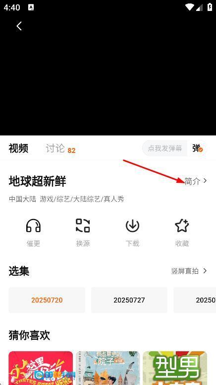 在综艺播放页面,点击简介,查看综艺简介。