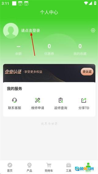 在个人中心页面,点击登录区域,即可进入登录页面。