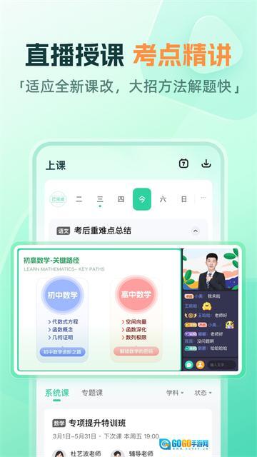 汇聚全国各地一线名师,通过高质量直播课程深入讲解重点难点,支持实时课堂互动,让学员享受专业教师的针对性辅导,从而大幅提升学习效果。