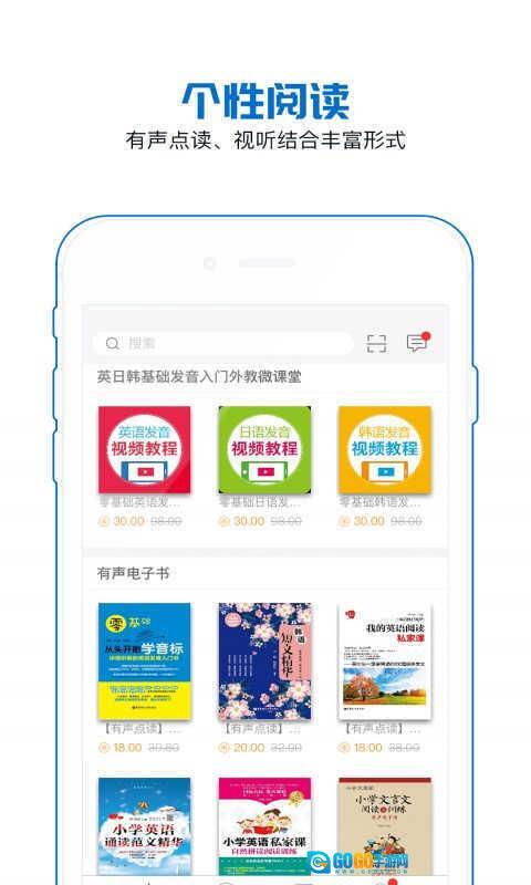 不仅提供海量电子书、电子教材内容,更结合图文、音频、视频以及独特的有声点读语言学习方式