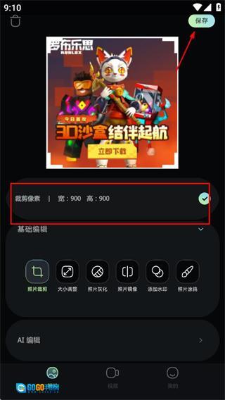 在设置好裁剪像素等相关参数后,点击保存按钮,即可完成照片的编辑工作并将其保存下来。
