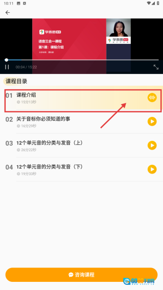 在课程学习页,点击课程介绍选项,开始课程学习。