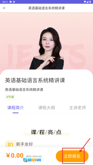 在课程详情页面,点击“立即报名”按钮,即可完成课程的报名流程。