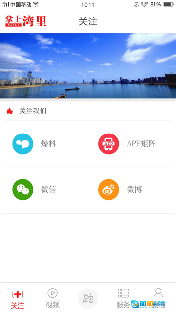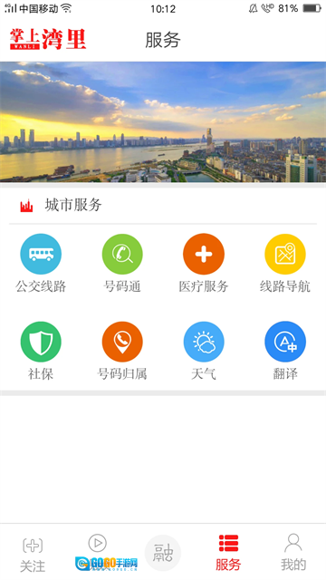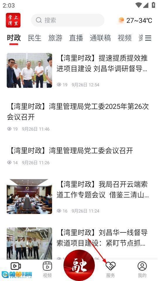 在掌上湾里首页,点击页面底部的“服务”选项,即可进入服务页面。