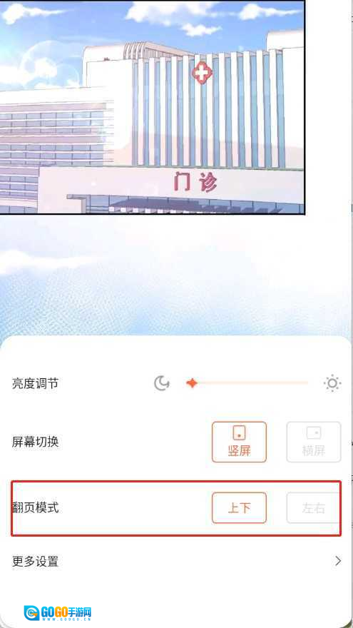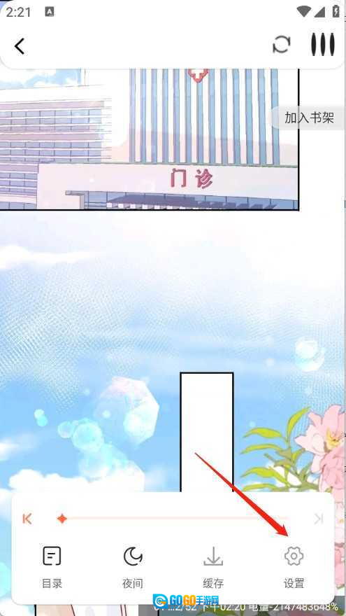 打开你想看的漫画进入阅读界面,轻触屏幕的任意一处,然后点击设置选项。