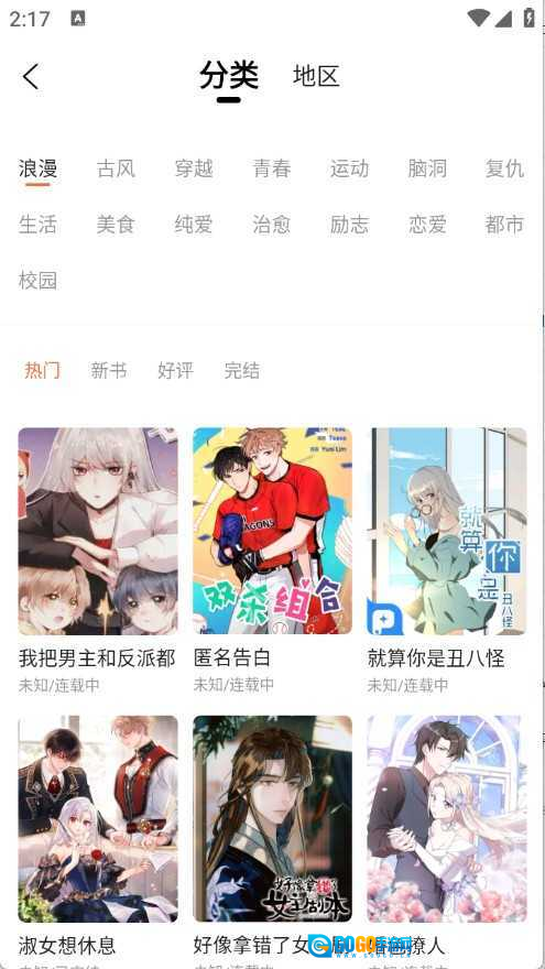 分类页面将漫画进行了详细的归类。