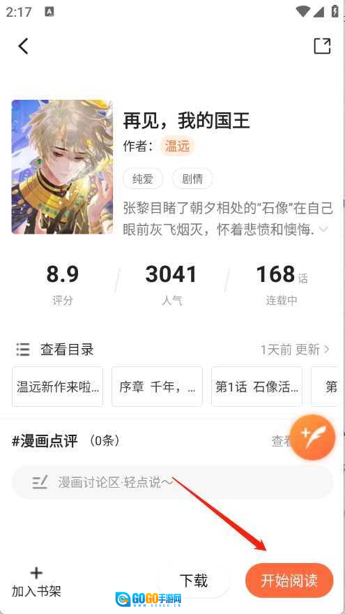 点开想看的漫画进入详情页,点击“开始阅读”。