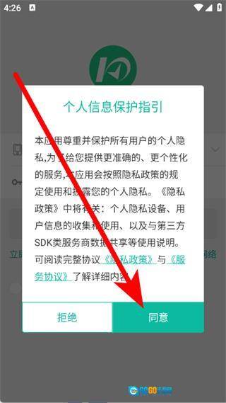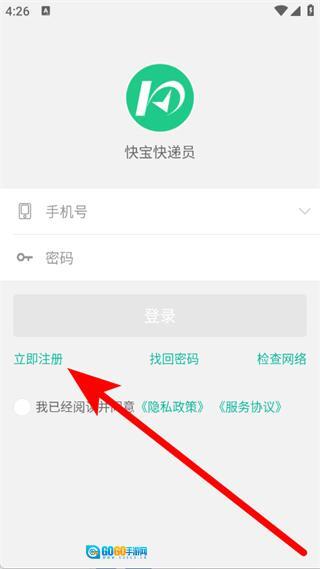 打开快宝快递员应用,在弹出的窗口里点击同意按钮,随后进入登录界面。