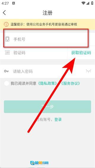 在注册登录页面,输入手机号后,点击获取验证码。