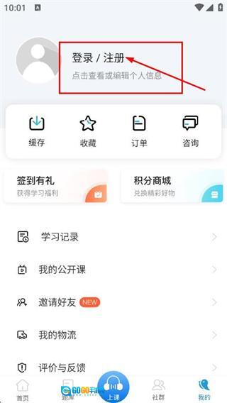 在个人中心页面,点击登录注册按钮,即可进入登录与注册页面。