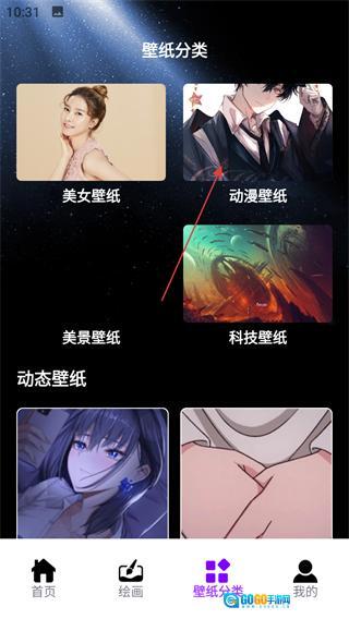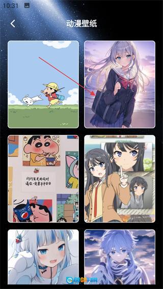 在壁纸分类页面,选择动漫壁纸,进入动漫壁纸页面。